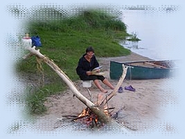 surveiller le canoë et son chargement. En route vers la suite du voyage.